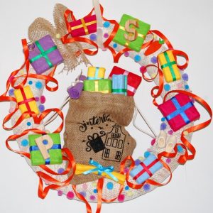 Vrolijke Sinterklaaskrans met pakjes en versiering. Voor de gezelligste 5 december avond. Doorsnede krans 40 cm