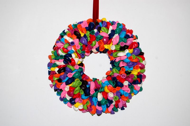 In deze ballonnenkrans zijn ongeveer 300 ballonnen verwerkt.