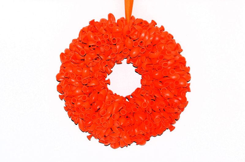 In deze krans zijn ongeveer 300 ballonnen verwerkt