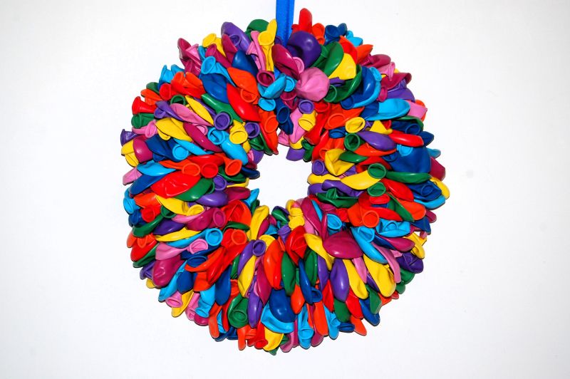 In deze krans zijn ongeveer 250 grote ballonnen (26cm) verwerkt