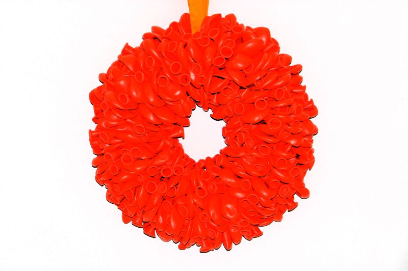 In deze krans zijn +/-250 grote ballonnen(26cm)verwerkt.