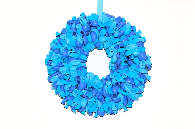 In deze vrolijke ballonnenkrans zijn ongeveer 300 ballonnen in