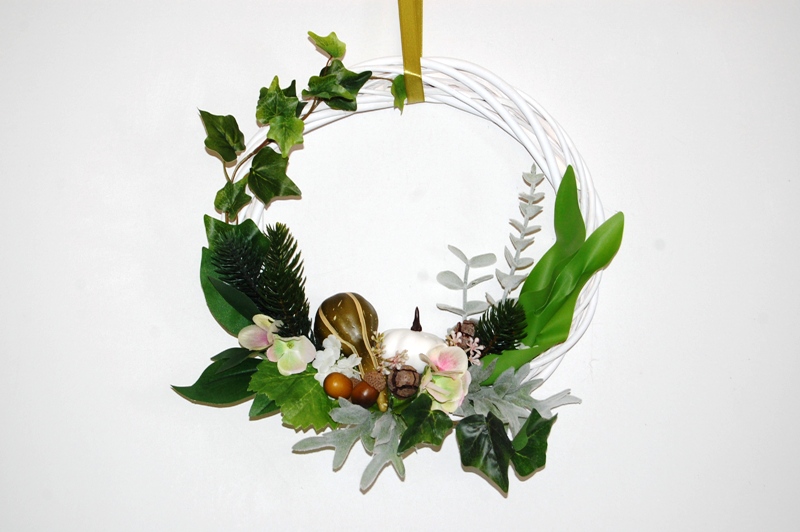 Gezellige herfst deurkrans met pompoentjes. Doorsnede krans 30 cm.