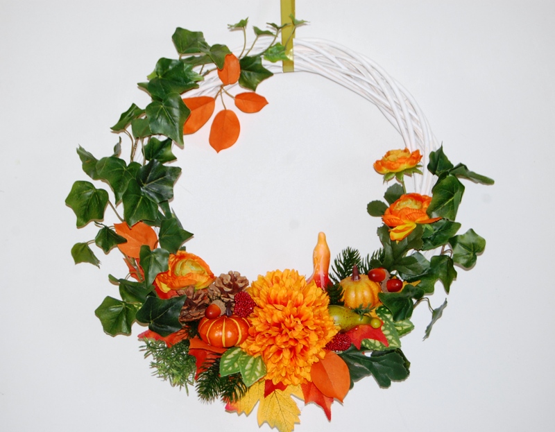 Vrolijke herfst deurkrans met kunststof pompoentjes. Doorsnede krans 40 cm incl. toef +/-47cm